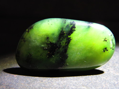Cette Variété de Jade est Vert Foncé, souvent tacheté de Noir, contrairement au Jade impérial beaucoup plus Clair. Elle est plus tendre que les autres variétés de Jade, connu depuis la préhistoire pour sa très Grande Résistance.