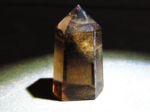 Le Quartz Fumé est un Cristal de Roche qui pendant sa Croissance, s'est vu « dopé » d'ions Aluminium, et sous l'influence de certaines ionisations de gaz rares comme le radon (très dense, qui bloque la lumière), il s’est opacifié et est devenu noir ou « enfumé ». les Variétés très sombres, très noires, sont appelées Quartz Morion.