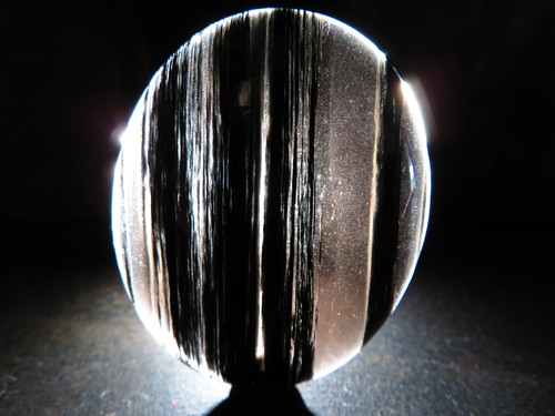 Ce qui lui donne ce dessin intérieur si particulier, c'est le fait que les dépôts Volcaniques se sont accumulés par couches successives et espacées, et non continues, dans la Matrice de verre de l'Obsidienne.