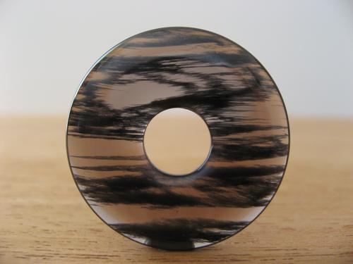 Ce qui lui donne ce dessin intérieur si particulier, c'est le fait que les dépôts Volcaniques se sont accumulés par couches successives et espacées, et non continues, dans la Matrice de verre de l'Obsidienne.