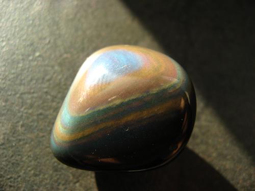 L'Obsidienne oeil Céleste ou Arc en Ciel est de loin, la plus puissante de toutes les Obsidiennes. On l'appelle arc en ciel, car elle revêt des reflets qui nous font penser aux couleurs de ce magnifique phénomène.